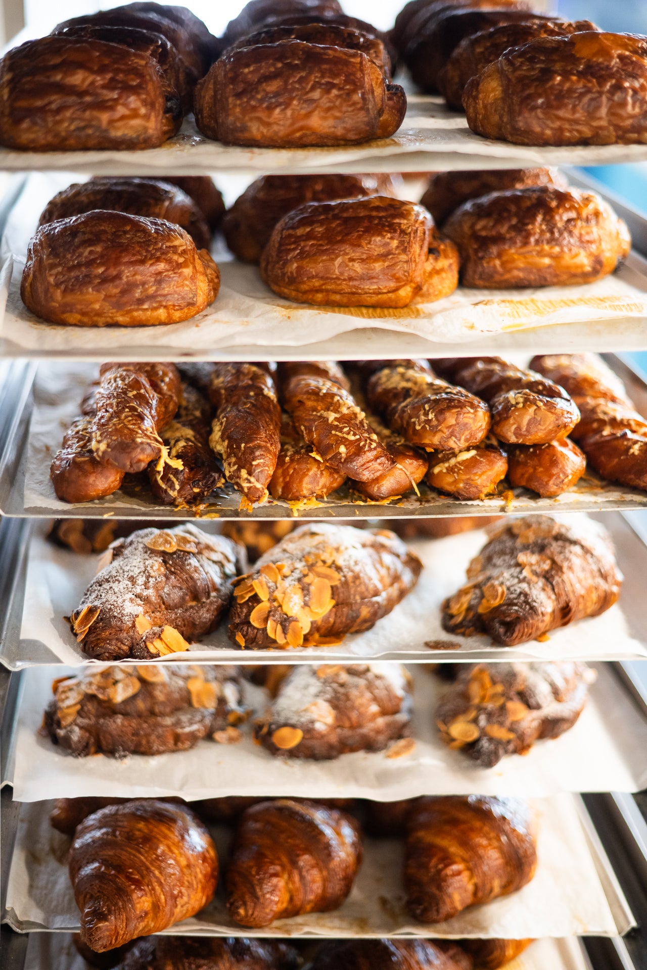 Read the full article here"Lined up in a glass cabinet are hefty twice-baked hazelnut croissants studded with toasted nuts; - where layers of flaky cinnamon pastry are folded into parcels and tossed with sugar."